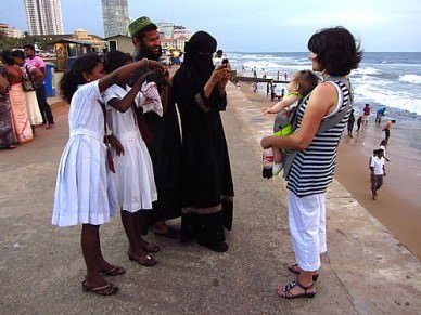 Galle Face Beach In Colombo Sri Lanka. Taking Picture With A Muslim Family