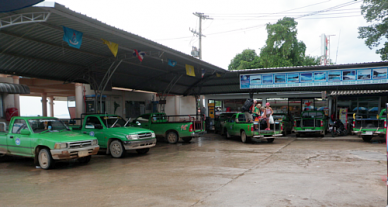Get in back of a pickup taxi In Koh Samet, Thailand